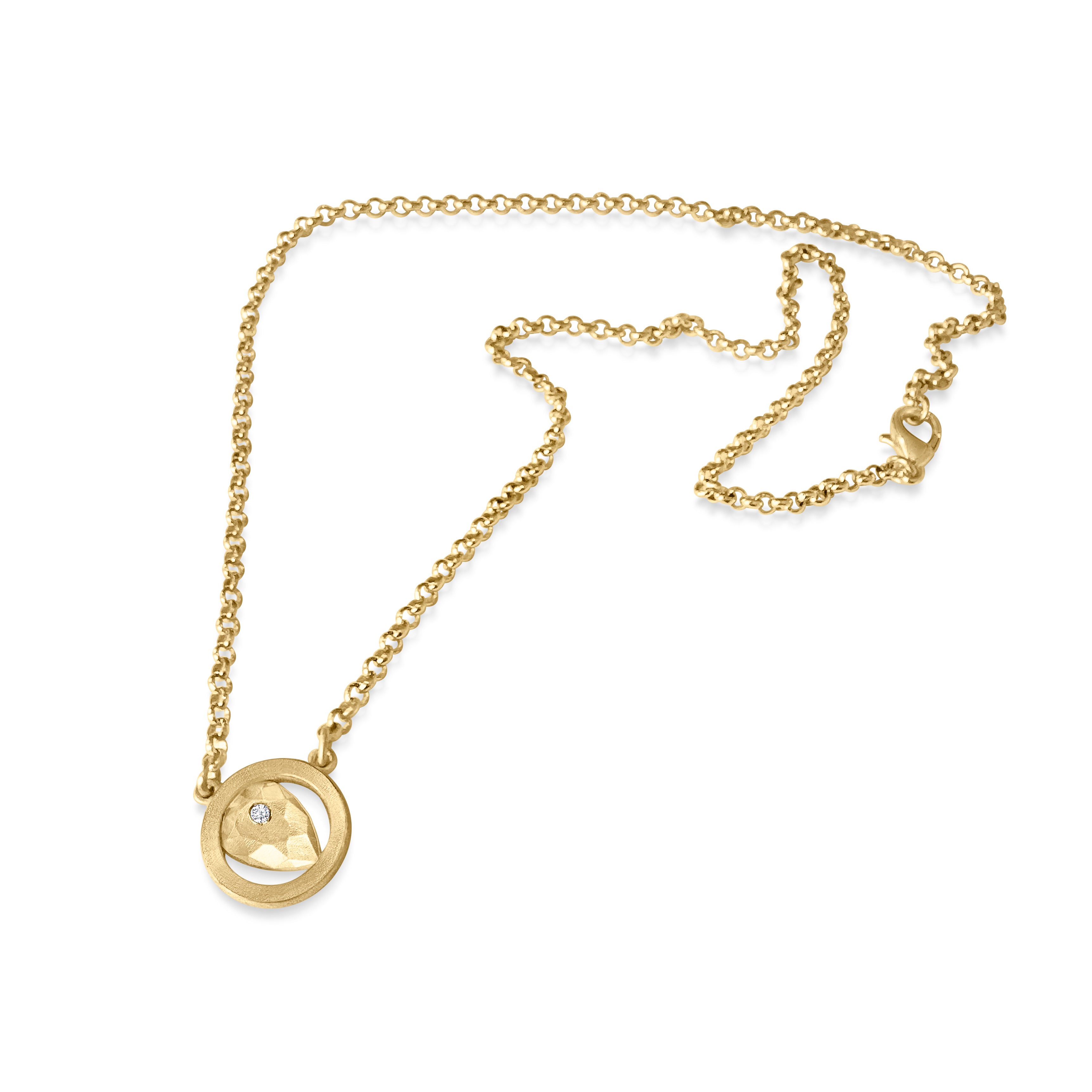 Matilde designed the Pepita series in tribute to the notion of finding nuggets of joy, whimsy and authenticity in the everyday and this 9ct gold or silver Pepita necklace is the perfect talisman to these sentiments. It’s crafted with an articulated recycled 9ct gold chain that suspends the collection’s hallmark pepita charm – the Italian term for nugget – set into a ring frame and finished with a discreetly placed brilliant-cut diamond.