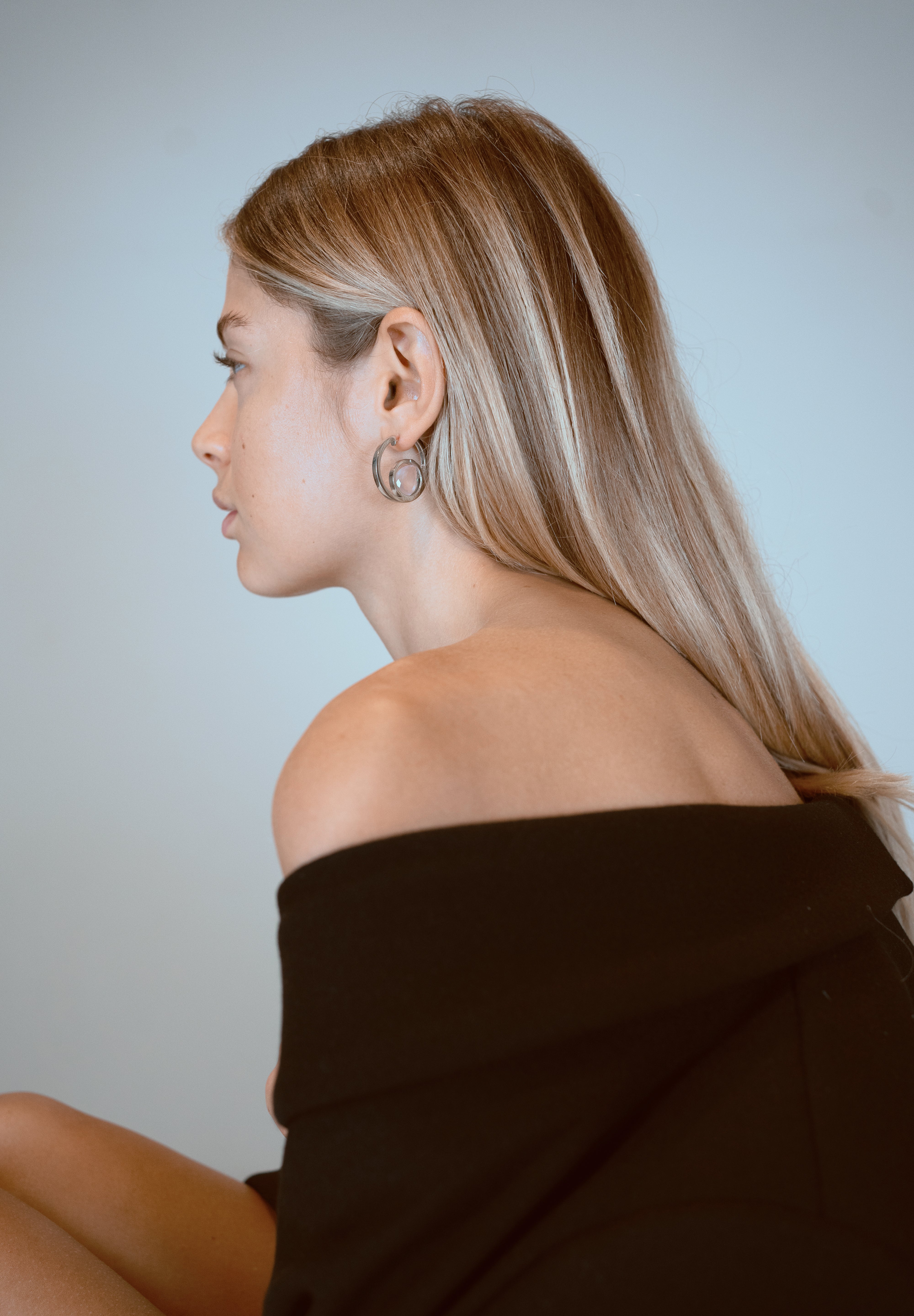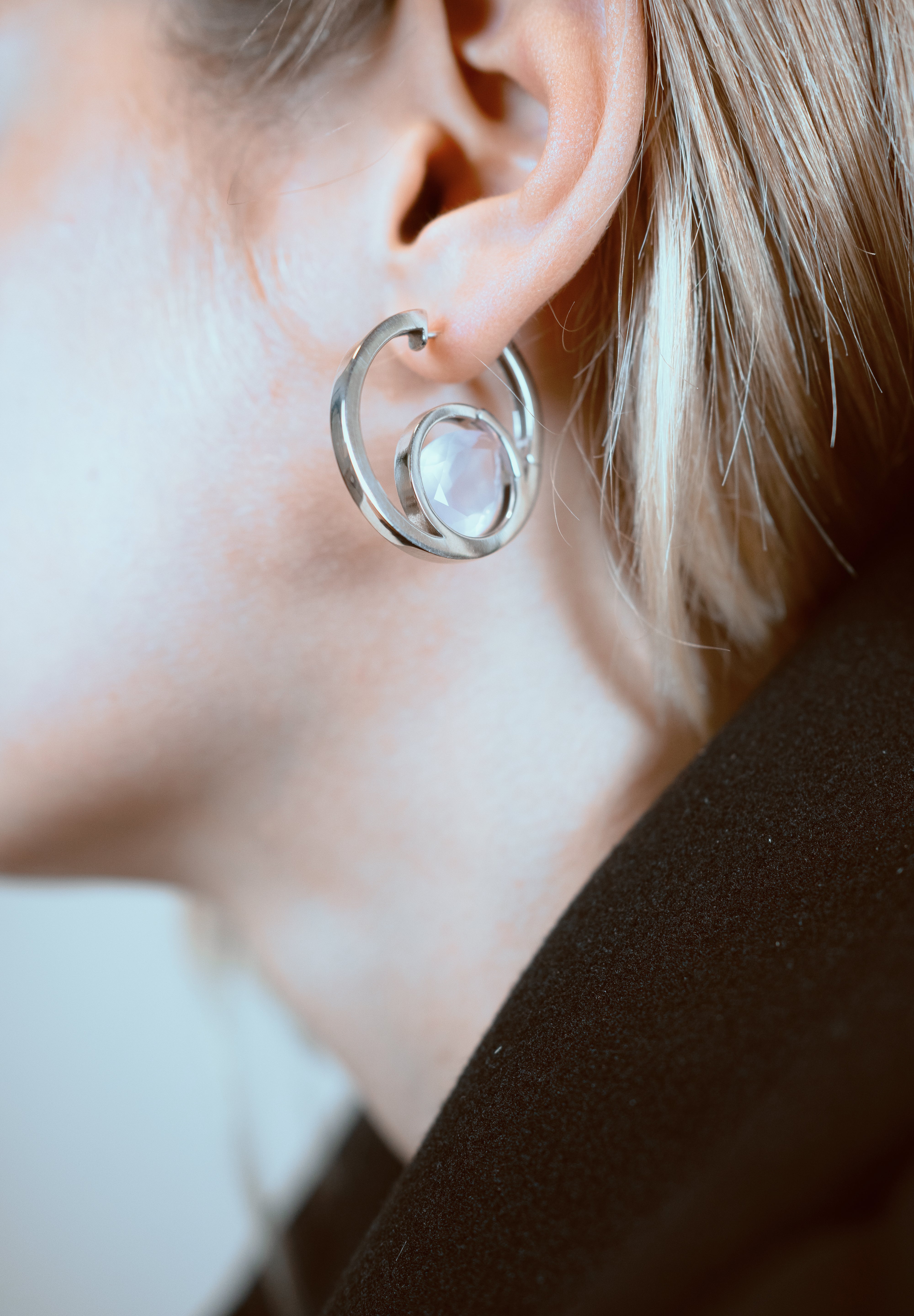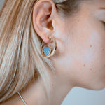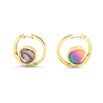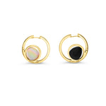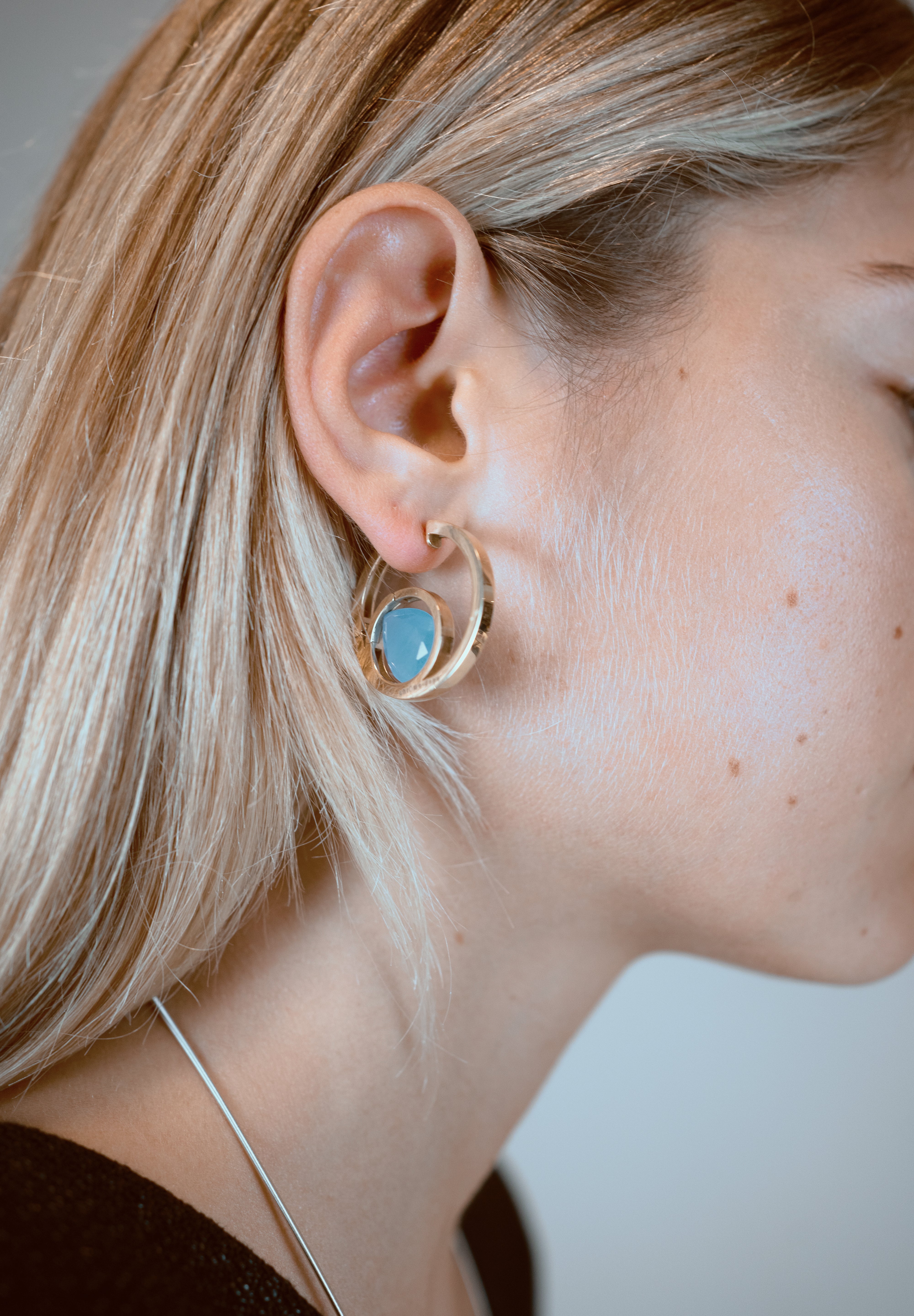 The interchangeable nature of these 9ct earrings are in keeping with Matilde’s core design philosophy – the stones centred in the earring’s looped shape can be switched out for one of five stone choices, depending on mood, occasion or personal instinct. Part of the Chromo-dope collection, they’re made from 9ct gold – also available in 9ct rose and white gold – with an elegant, three-dimensional circulate frame, and secure with a hinge fastening.