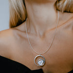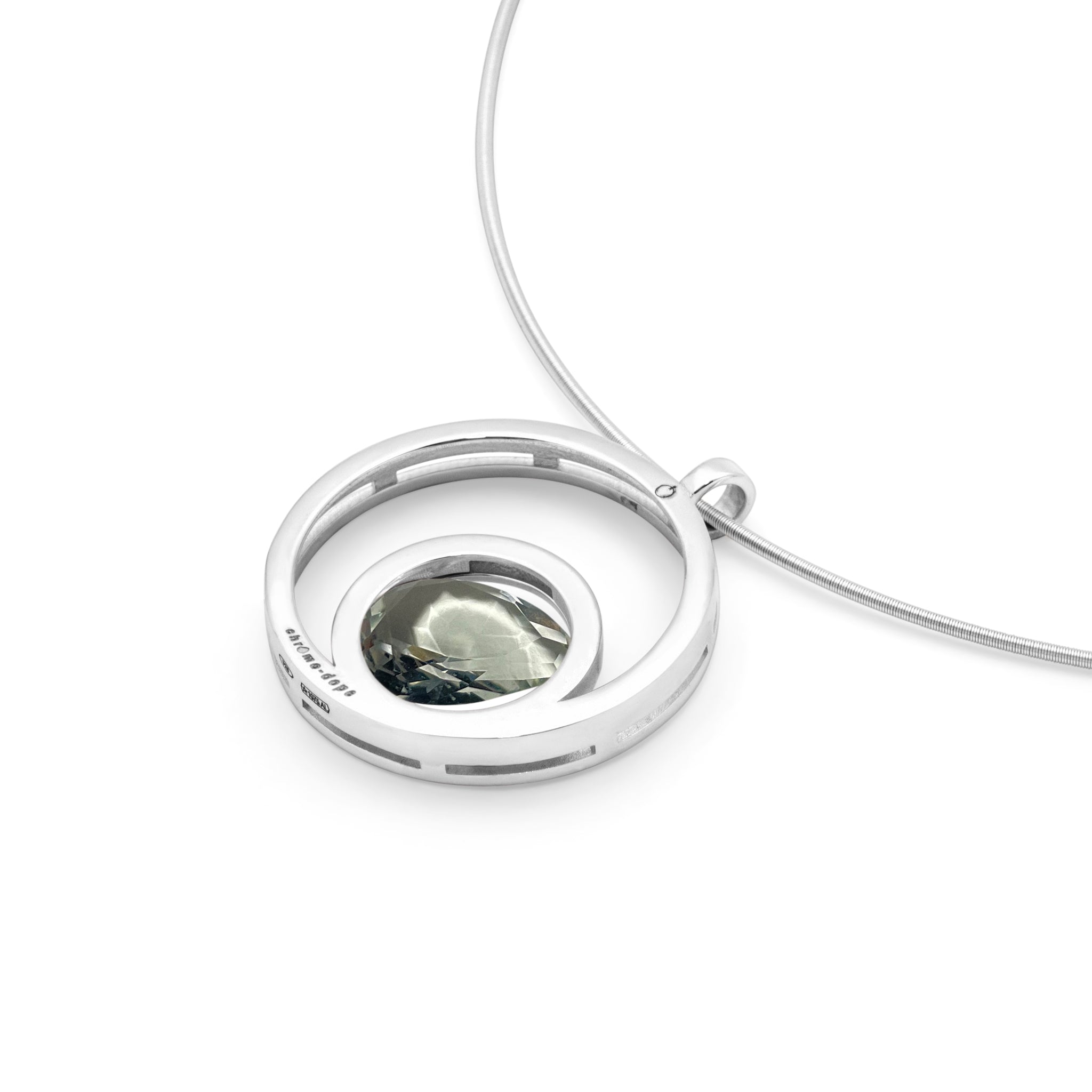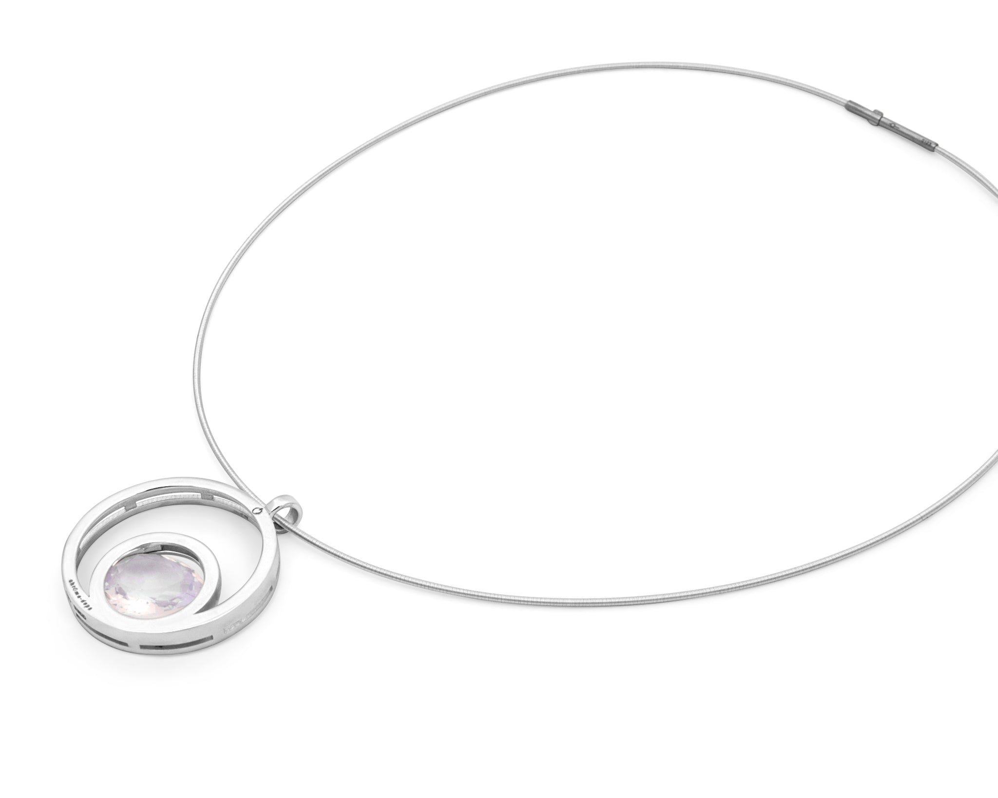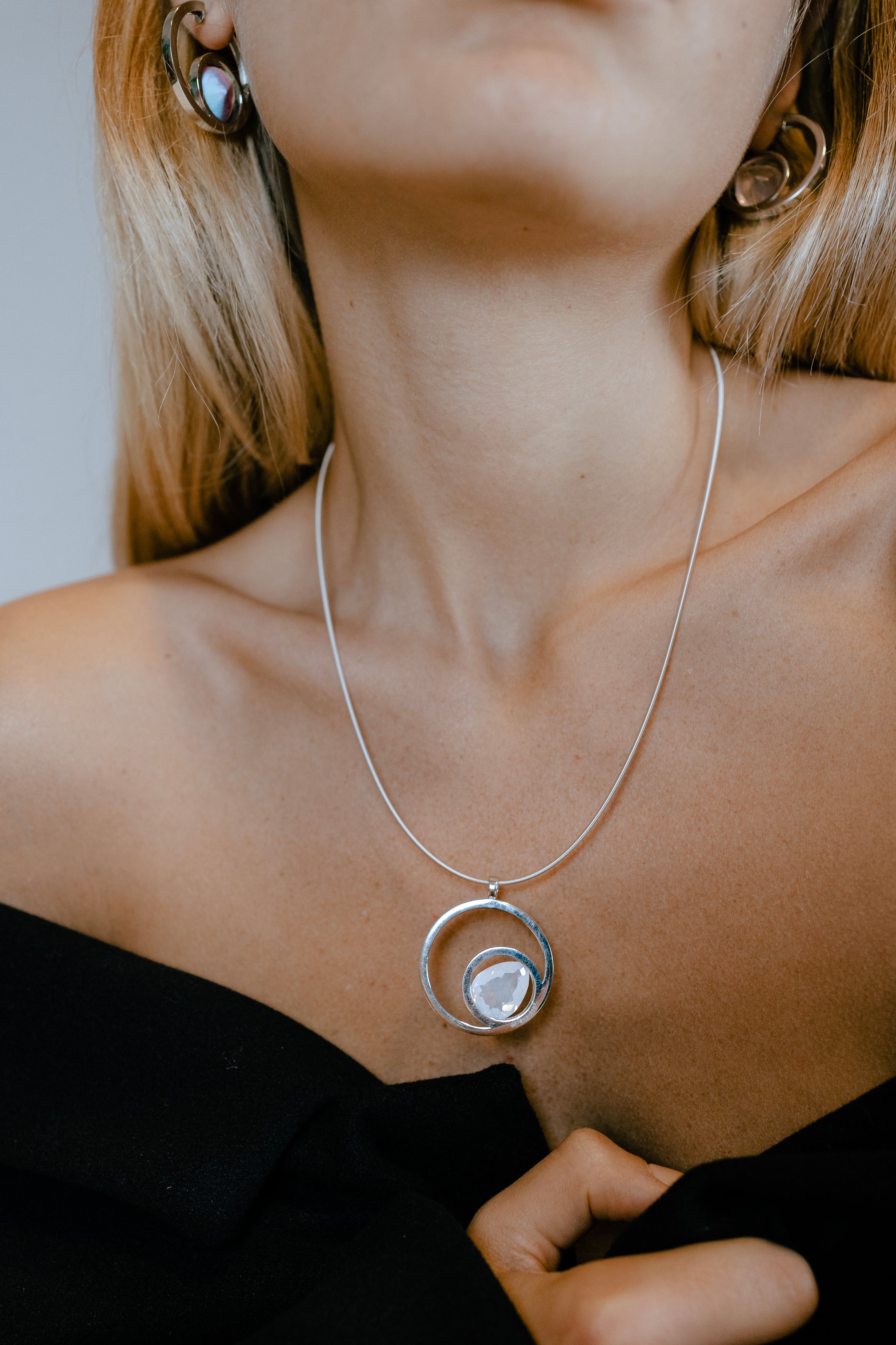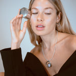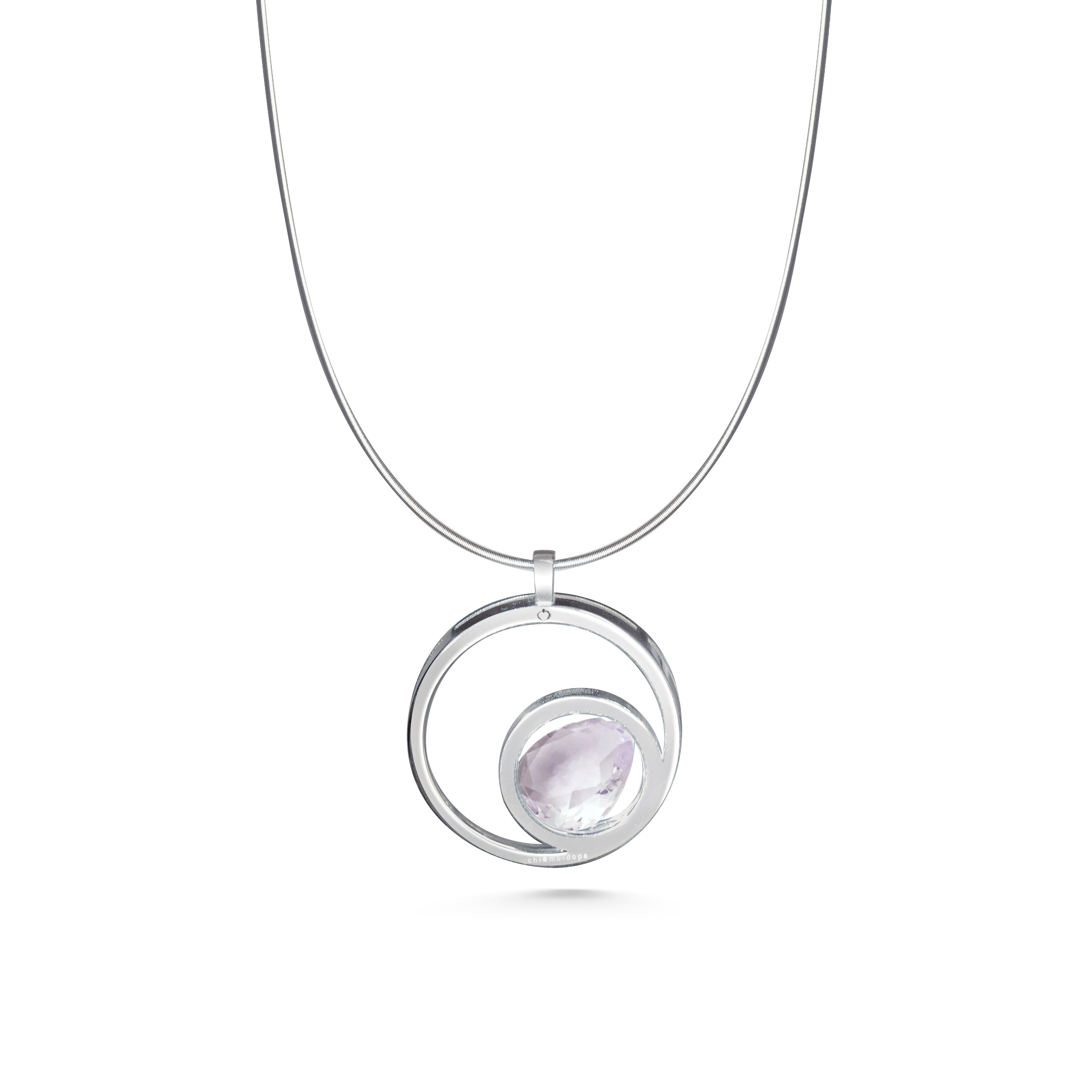 The stone that centred the elegant and commanding design of Matilde’s Fixed Gem pendant is secured into the frame, designed as a single and stationary everyday wellness talisman. It’s handcrafted by Matilde from recycled 9ct gold or silver and set with a faceted drop of either blue jade, lilac jade, rose quartz, prasiolite – known as green quartz – or onyx, each stone of which is handpicked by the designer for their respective qualities cited in ancient crystal healing lore.