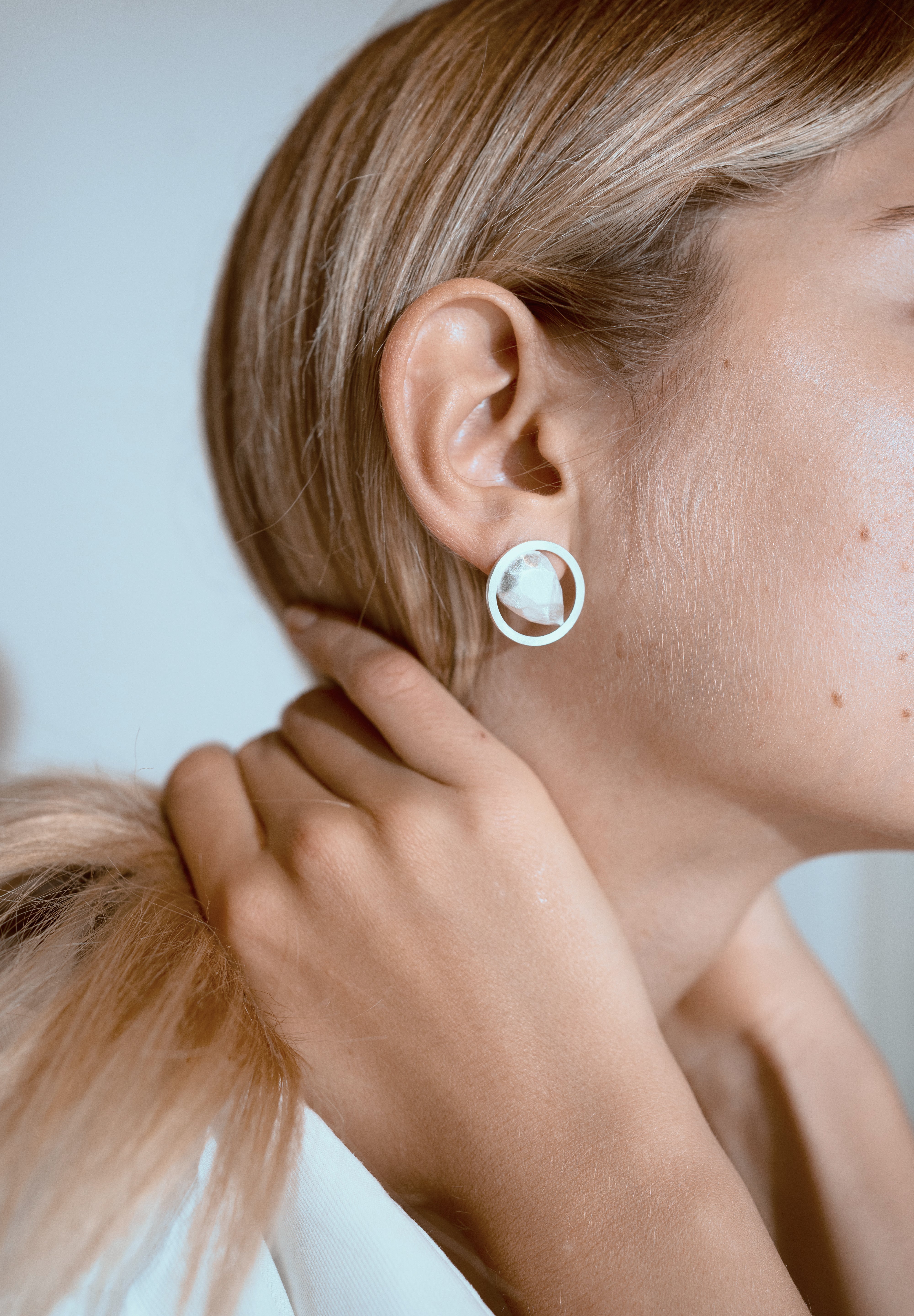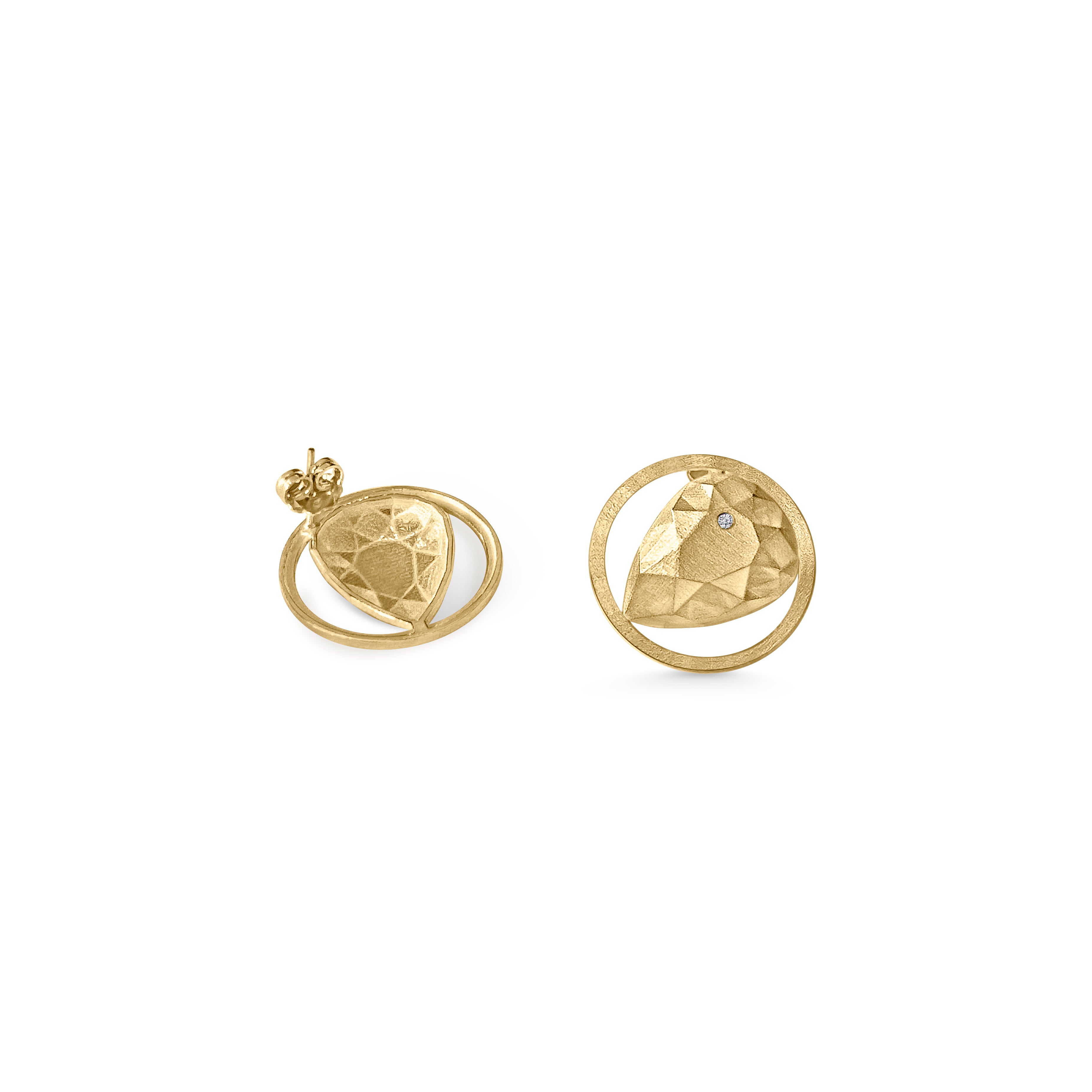 The irregular facets of the printed ‘nugget’ motif of these 9ct gold Pepita earrings is perfectly contrasted against the curvature of its circular frame - typical details of Matilde’s considered approach to design. Part of the namesake collection, they’re crafted in the UK from recycled 9ct gold or silver with post-back fastenings and then finished with a discreetly set brilliant-cut diamond.