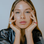 The stones set into the top of Matilde’s Fixed Gem ring are all cited as powerful remedy sources in ancient crystal healing lore, ringing true to the designer’s ethos of crafting jewellery worn as wellness talismans. It’s crafted from 9ct gold or silver with a commanding square-edged profile and centred with a top hinge fastening, then finished with the collection’s bold monogramming.