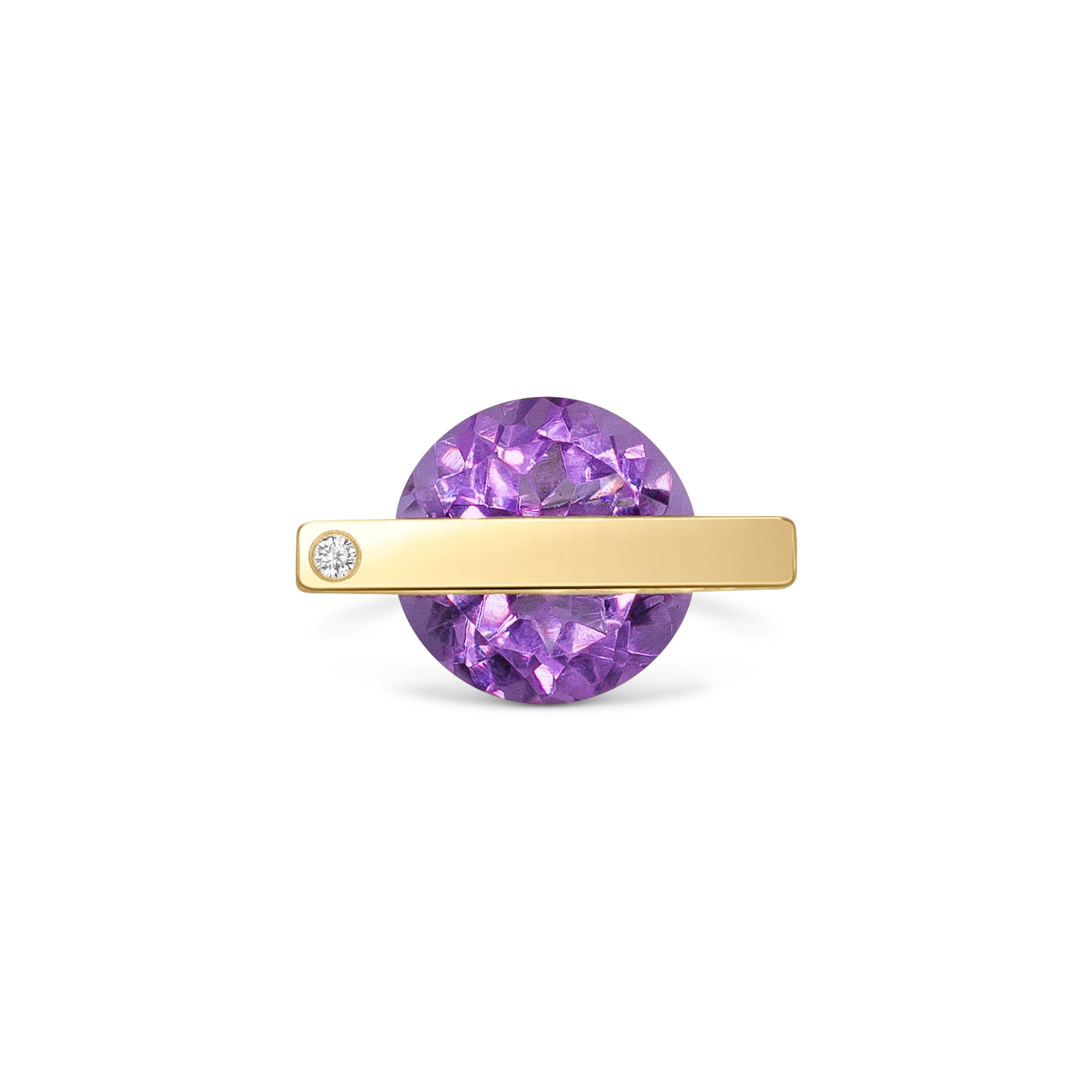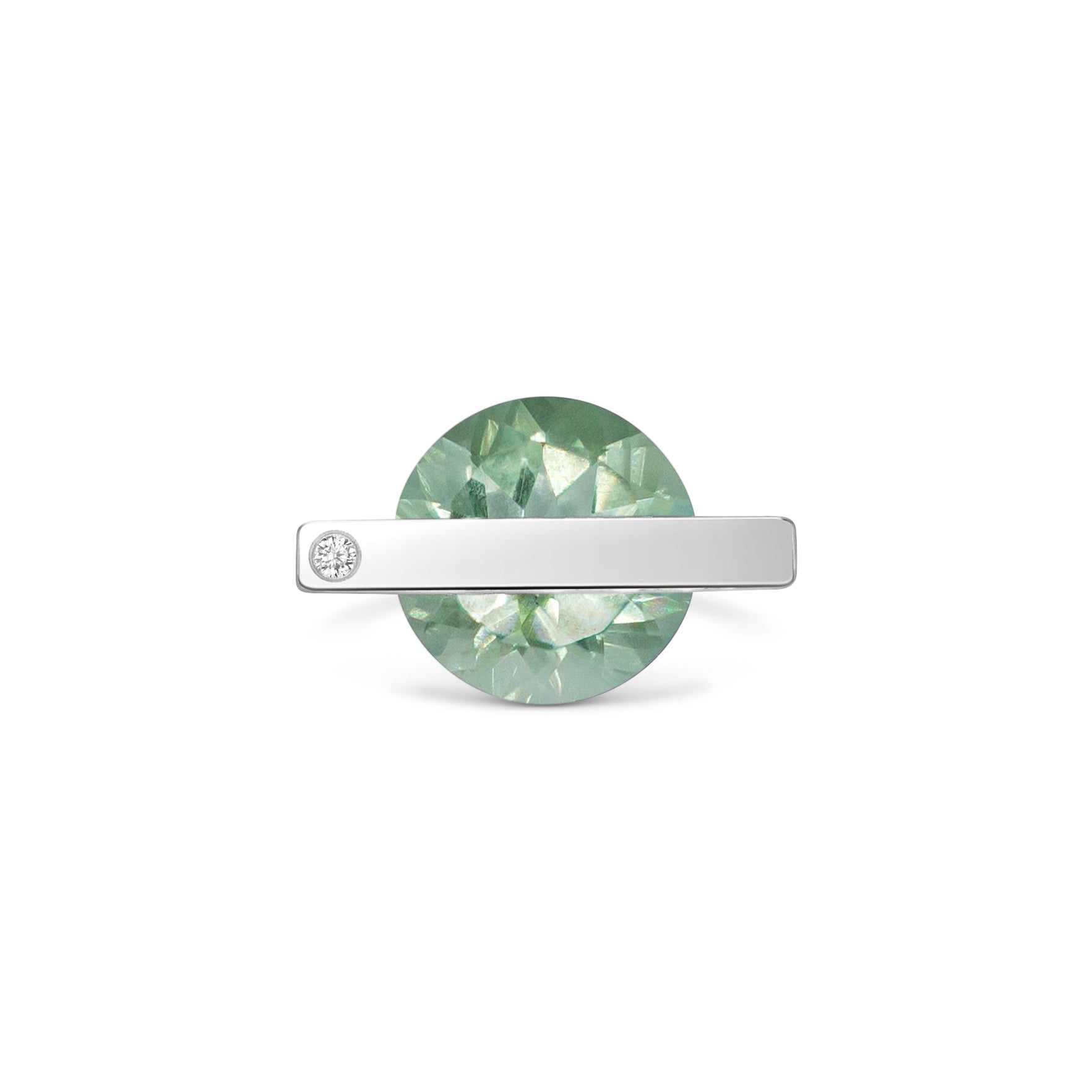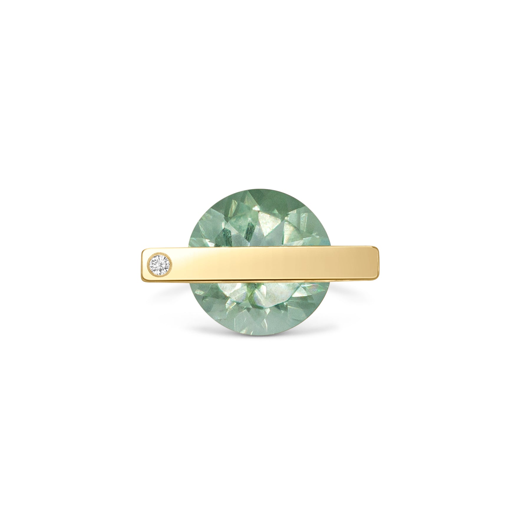 A core piece of the Chromo-Fine collection, this namesake 14kt gold or recycled silver futuristic & experimental ring is designed to be an everyday token of wellness, rendered in an elevated light with the use of precious metals and stones. It’s crafted with a squared, angular frame, complete with defined edges and tension-set with a faceted drop of various healing gems and a single diamond giving the perfect finishing touch: