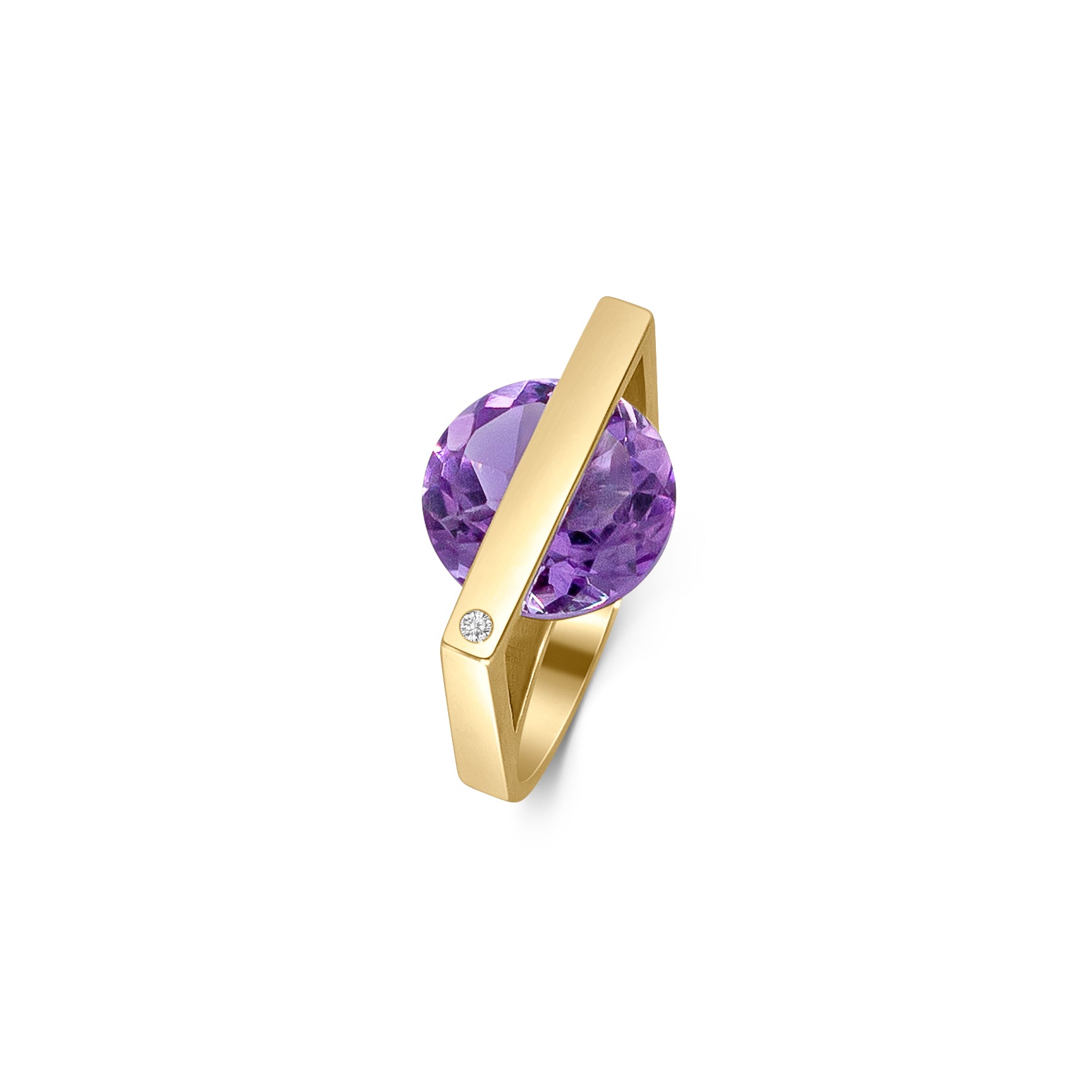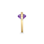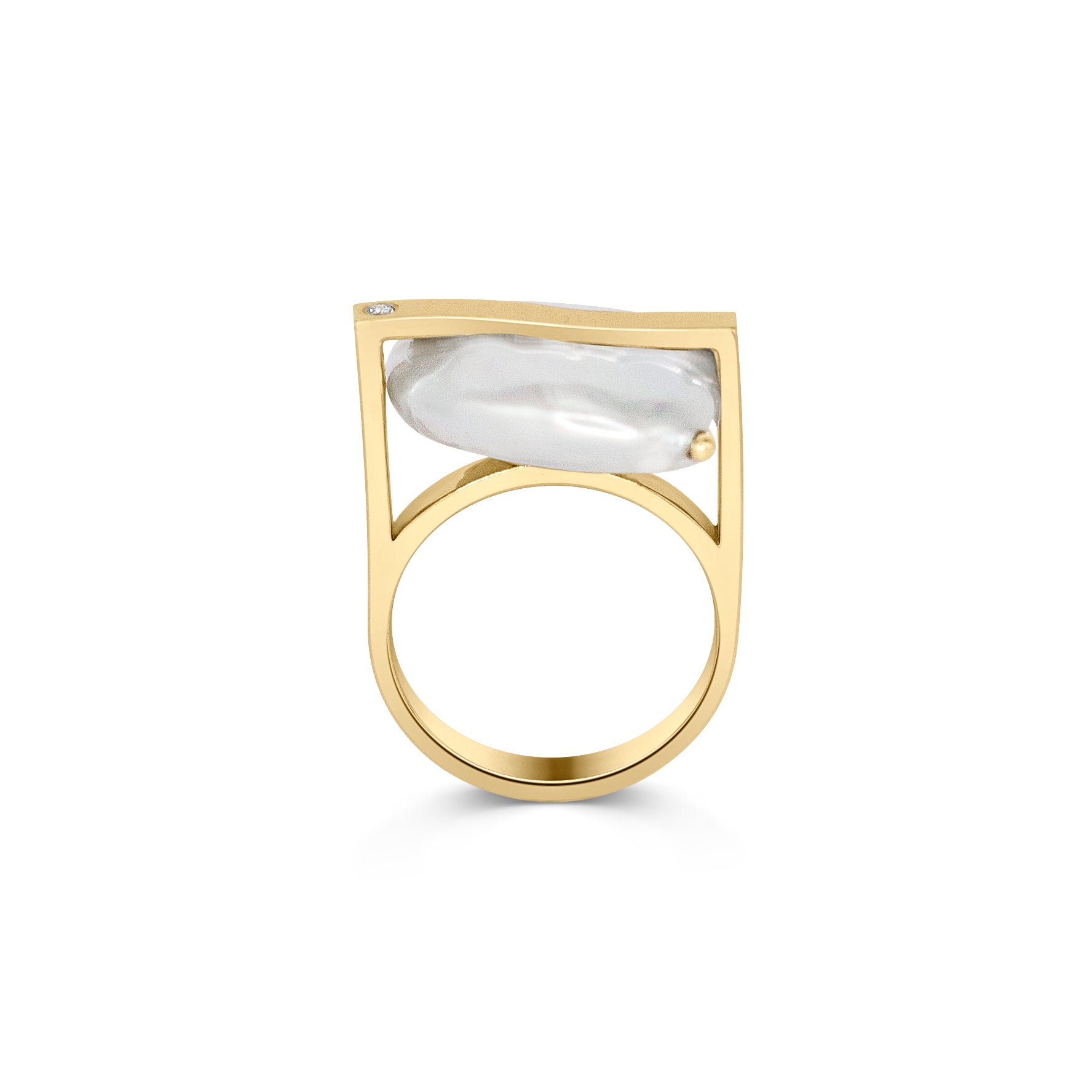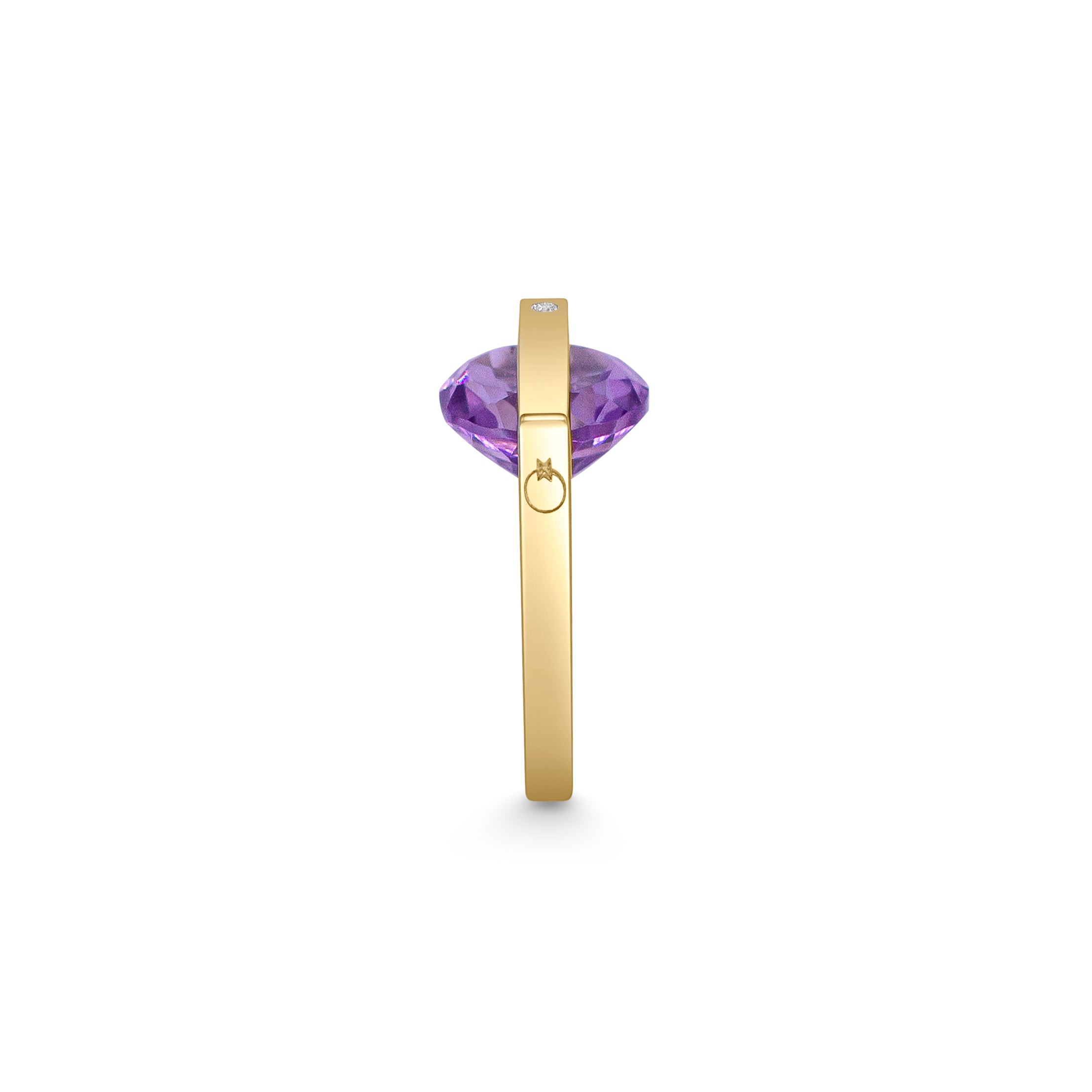 A core piece of the Chromo-Fine collection, this namesake 14kt gold or recycled silver futuristic & experimental ring is designed to be an everyday token of wellness, rendered in an elevated light with the use of precious metals and stones. It’s crafted with a squared, angular frame, complete with defined edges and tension-set with a faceted drop of various healing gems and a single diamond giving the perfect finishing touch: